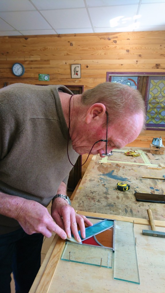 Vous réaliserez un vitrail 20 cm x 20 cm, de A à Z : tracé, calibrage, coupe, sertissage, masticage.